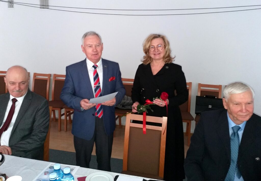 Następnie, prezes, przy aplauzie wszystkich uczestników spotkania złożył życzenia urodzinowe wraz z dyplomami dwojgu Jubilatom – naszej jedynej pani nadinspektor Lidii Mołodeckiej (60!) i admirałowi Jerzemu Lendzie (70!).