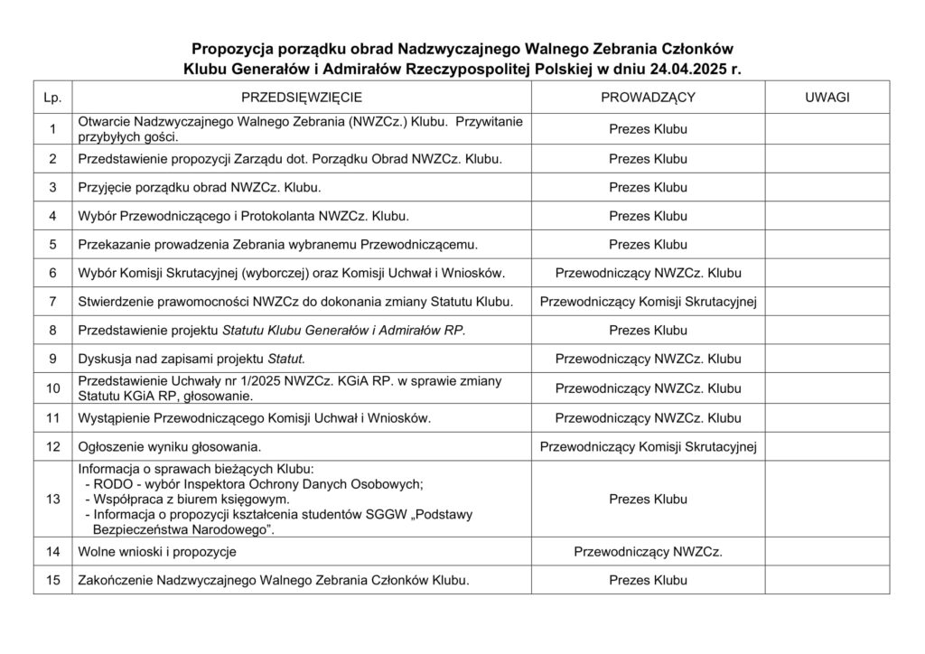 Proponowany porządek Nadzwyczajnego Walnego Zebrania Członków w dniu 24.04.2025r.