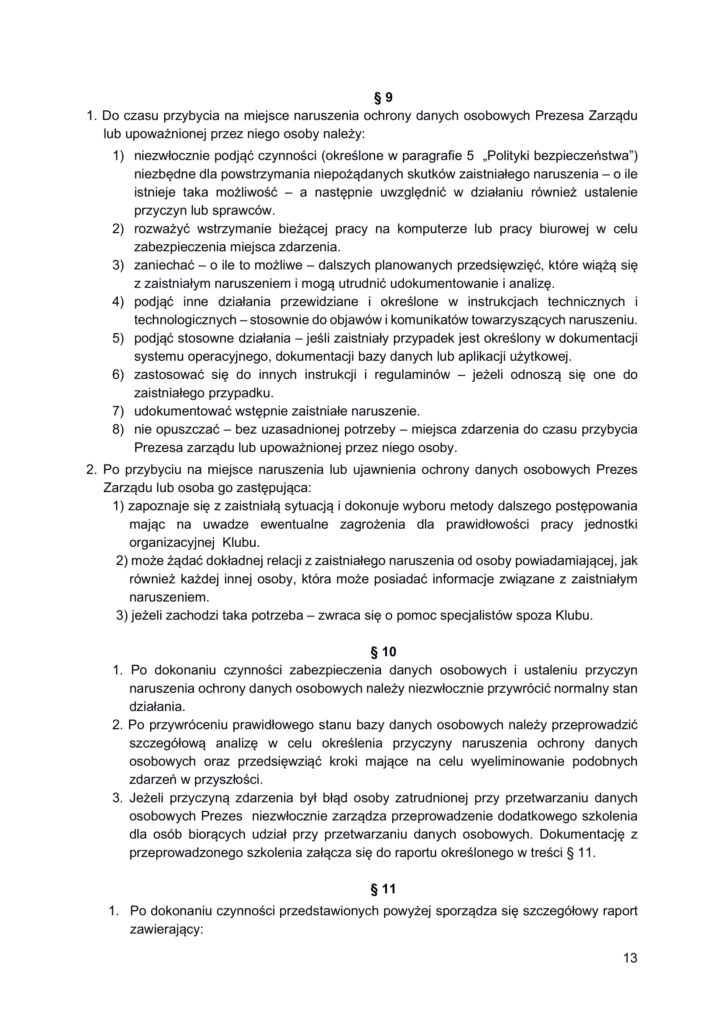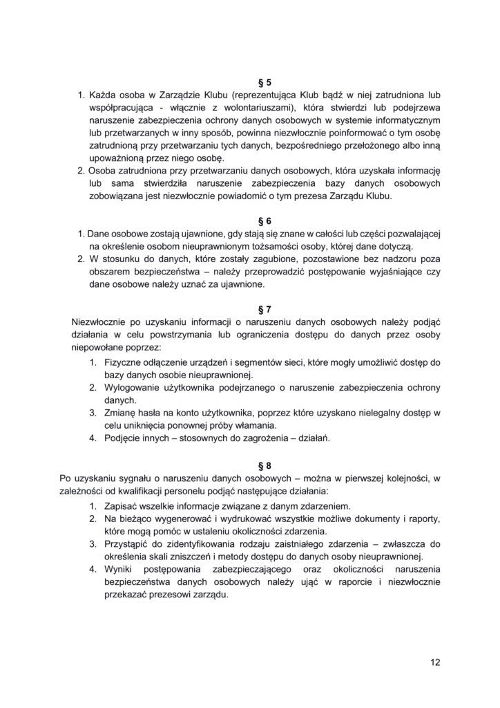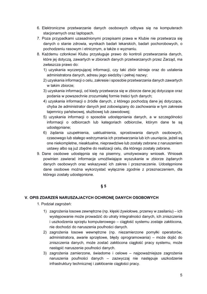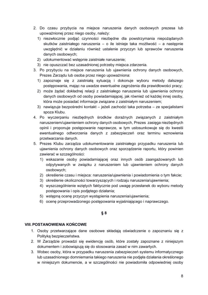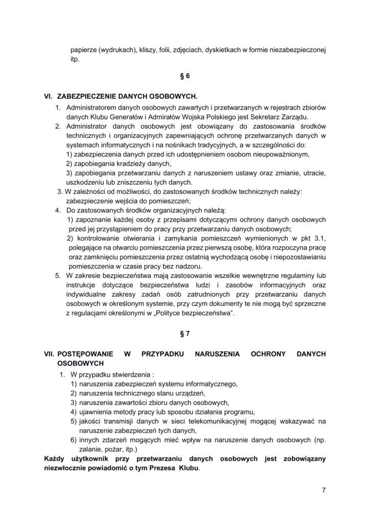 Polityka bezpieczeństwa przetwarzania danych osobowych w Klubie Generałów i Admirałów RP